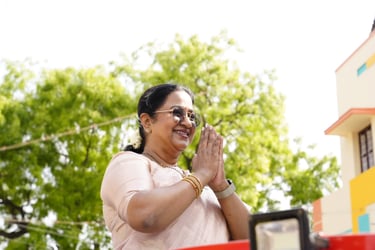 Smt. Radhika Sarathkumar praised the digital marketing team from Nachiyar Digital Solutions for their exceptional work during her 2024 election campaign. She commended the team's creativity, strategic planning, and ability to engage with a diverse audience through impactful social media content. Radhika appreciated their professionalism and dedication in handling her digital presence, which significantly enhanced her visibility and connection with voters. She expressed gratitude for the team's innovative approach and seamless execution, which played a crucial role in strengthening her online outreach.