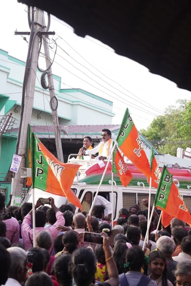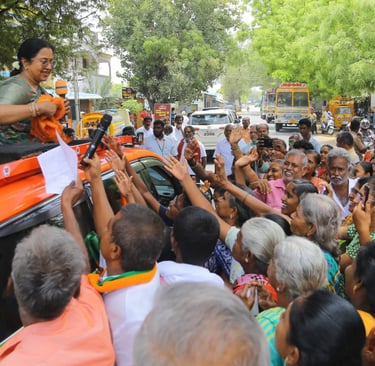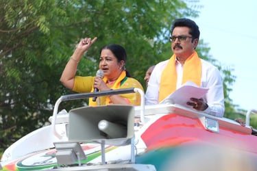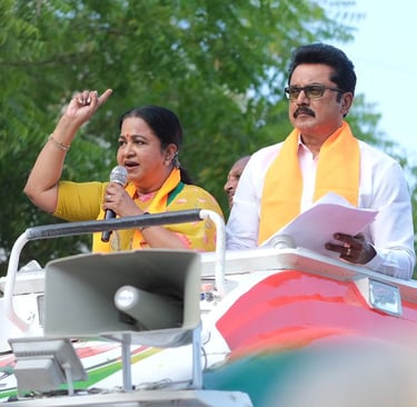 In 2024, we successfully managed the social media and digital marketing campaign for Virudhunagar Parliament Candidate Smt. Radhika Sarathkumar during the elections. Our dedicated team, led by Manager and Project Head J.K. Gogul Balaji, consisted of professionals who ensured the campaign reached voters effectively. The core team included L. Dharma (Assistant Manager and Project Coordinator), Hari Babu (Political Field Analyst), T. Sakthi Pandi (Team Organizer), and a talented Camera Crew from Madurai — SK Shiva and Ram Shan, our expert photographers and videographers.